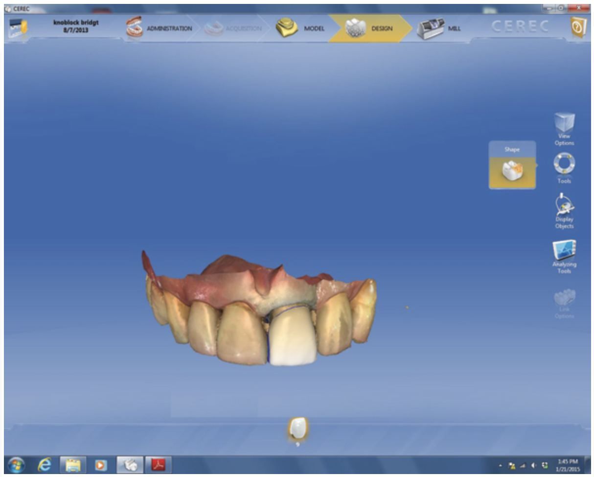 Other companies also provide CAD/CAM restorative solutions (eg, CS Solutions, Carestream, www.carestreamdental.com; 3Shape™ Scan & Design System, 3Shape, www.3shape.com) ranging from complete systems (ie, scan, design, and milling components) to those featuring an oral scanner and design software only, or software and milling machinery (eg, iTero®, Align Technology, Inc., www.aligntech.com; 3M™ True Definition Scanner, 3M™ ESPE™, www.3mespe.com). As the popularity and prevalence of CAD/CAM technology and same-day dentistry continue to grow, more product developments for CAD/CAM use are expected.